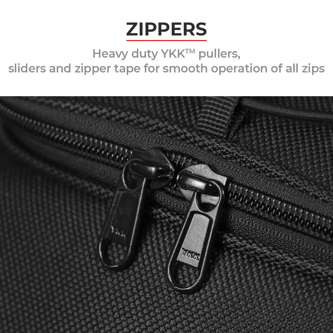 - Heavy duty YKK™ (the world's best!) is used across our range - pullers, sliders & tape - for extra durability and smooth operation on all zips. You can check the underside of the slider for the embossed “YKK” logo.